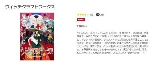 「ウィッチクラフトワークス」のアニメのレンタル料金は1話220円です。