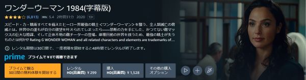 Amazonプライムビデオは、30日間のお試し無料期間があり「ワンダーウーマン1984」の映画をフルで視聴することができます。