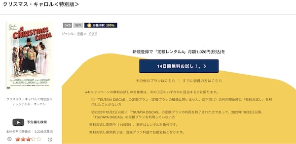 そして、映画「クリスマス・キャロル」はツタヤディスカスで配信しているので、無料でDVDレンタルが可能です。