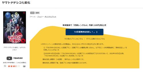 『TSUTAYA DISCAS』は初回登録で、14日間のお試し期間があるのでアニメ「ヤマトナデシコ七変化」をお試しで全話視聴することができますよ。
