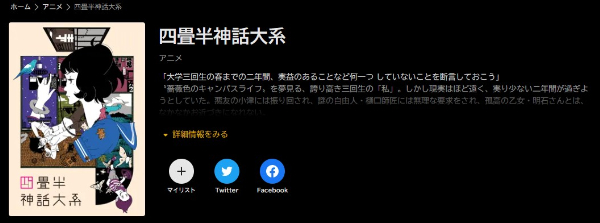 U-NEXTでアニメ「四畳半神話大系」の動画を無料トライアルで全話視聴