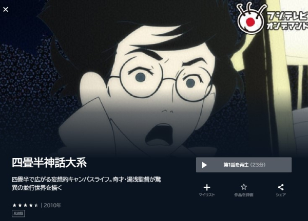 - 「四畳半神話大系」が全話見放題で視聴可能