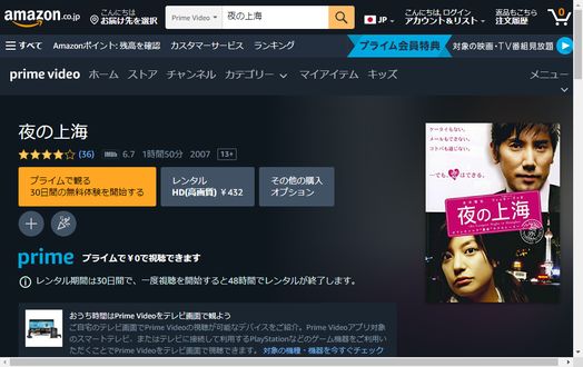 Amazonプライムビデオは、30日間のお試し無料期間があり「夜の上海」の映画をフルで視聴することができます。