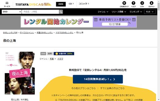 TSUTAYA DISCASで映画「夜の上海」をDVDレンタルで無料視聴