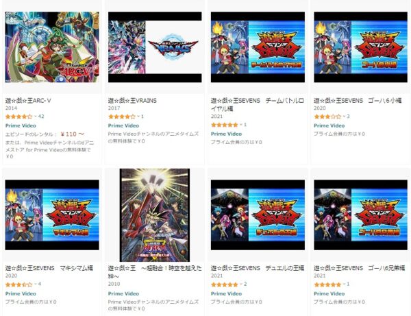 Amazonプライムビデオで、「遊☆戯☆王」のアニメシリーズ配信作品は以下にまとめました。