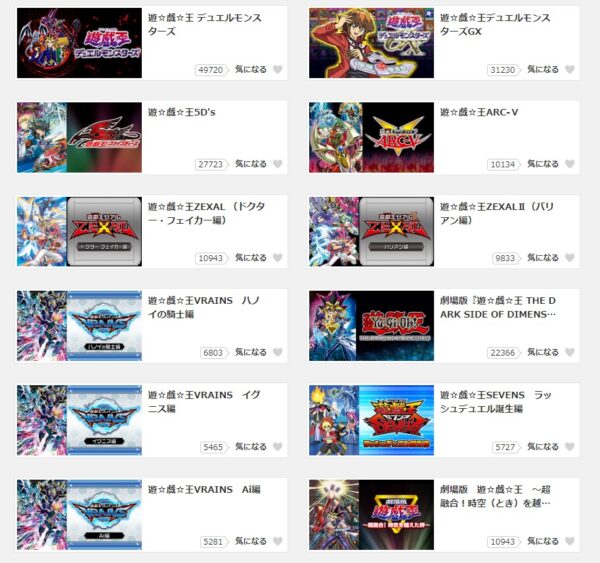 次に、「遊☆戯☆王」のアニメを配信してる動画配信サイトを紹介します。