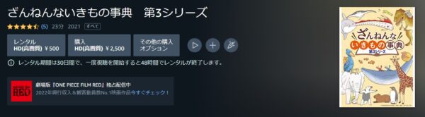 Amazonプライムはアニメ「ざんねんないきもの事典 第3シリーズ」は無料で視聴できませんが、関連動画やシリーズ作品には見放題で配信されているものもあります。
