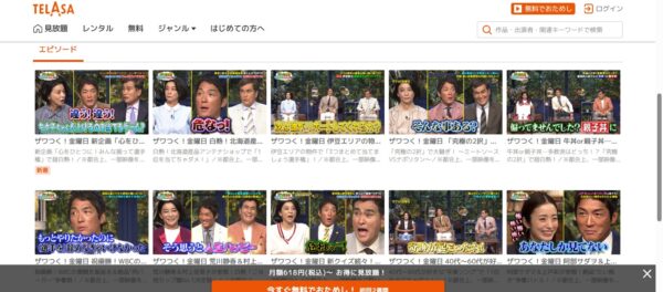 「ザワつく!」のバラエティ番組は、TELASAで配信しており無料視聴ができます。