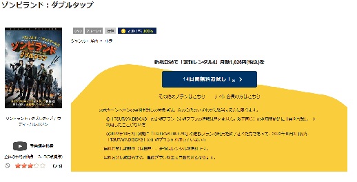 しかし、映画「ゾンビランド:ダブルタップ」はレンタル作品のため、100円かかってしまい無料視聴することができません。