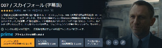 Amazonプライムビデオは、30日間のお試し無料期間があり「007 スカイフォール」の映画をフルで視聴することができます。