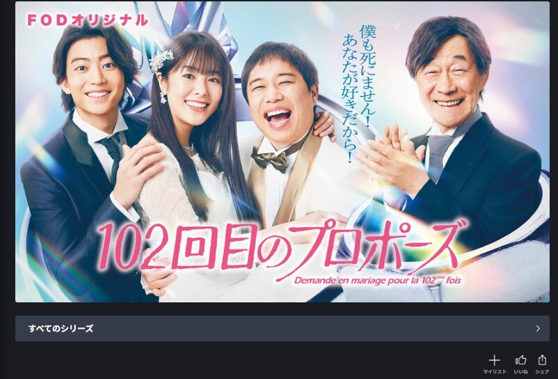 また、ドラマ「102回目のプロポーズ」に関してはFODにて3月19日から先行配信で視聴することが可能ですよ。