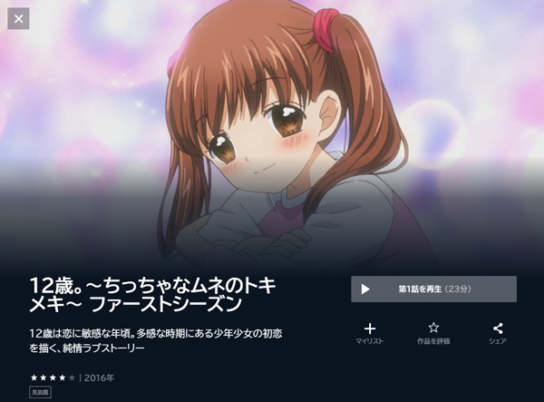 - 「12歳。~ちっちゃなムネのトキメキ~」が全話見放題で視聴可能