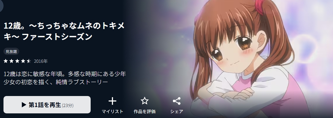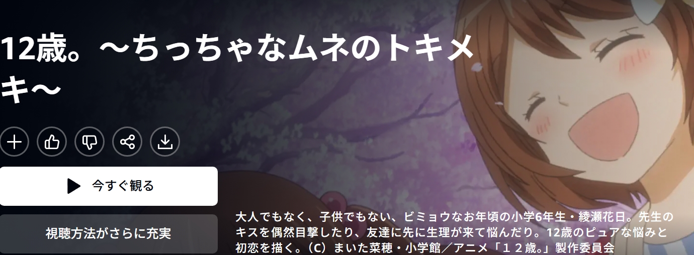 アニメ「12歳。~ちっちゃなムネのトキメキ~」を全話視聴できる動画配信サービスまとめ