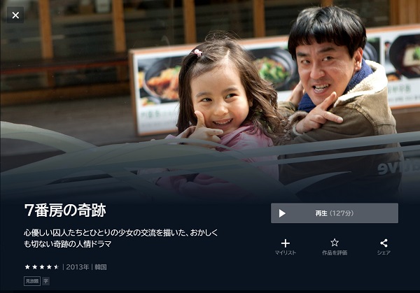 2025年11月現在、U-NEXTでは映画「7番房の奇跡」のフル動画が見放題で配信中です。