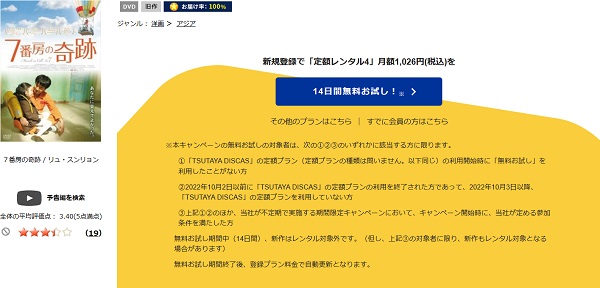 TSUTAYA DISCASで映画「7番房の奇跡」を視聴するなら、下記2つの方法がおすすめですよ。