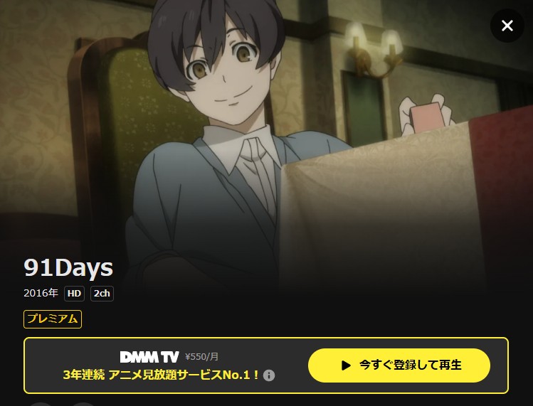 2026年4月現在、DMM TVではアニメ「91Days」の動画が見放題で配信中です。