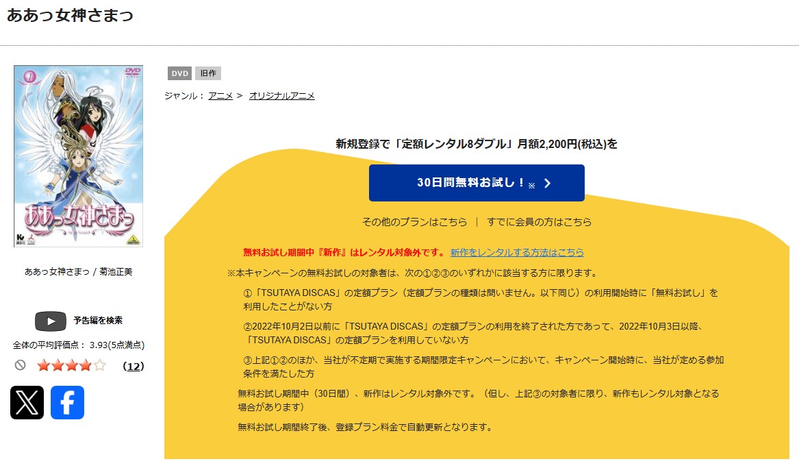 31日間の無料トライアルを利用すれば、追加料金なしで「ああっ女神さまっ(1期)」を全話視聴できます。