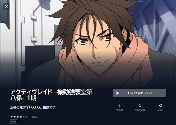 - 「アクティヴレイド -機動強襲室第八係」の関連動画も無料で視聴できる。