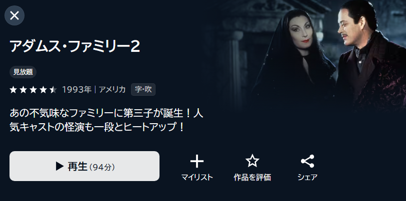 また、「アダムス・ファミリー2」の映画の関連作品も見放題でフル視聴できます。