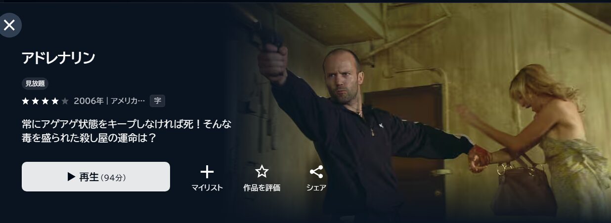 U-NEXTで映画「アドレナリン」の配信をフル視聴