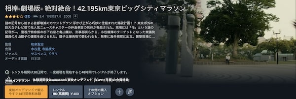 Amazonプライムビデオで映画「相棒 -劇場版- 絶体絶命! 42.195km 東京ビッグシティマラソン」をフルで無料視聴