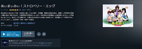 Amazonプライムはアニメ「あぃまぃみぃ!ストロベリー・エッグ」は無料で視聴できませんが、関連動画やシリーズ作品には見放題で配信されているものもあります。