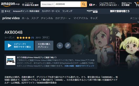 人気の動画配信サイトAmazonプライムでも、アニメ「AKB0048(1期)」を視聴できるか調査しました。
