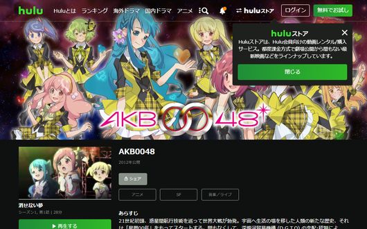 Huluでアニメ「AKB0048(1期)」の動画を全話視聴