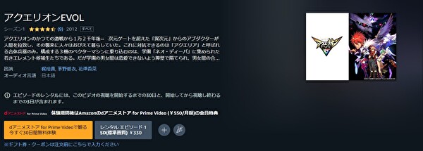 人気の動画配信サイトAmazonプライムでも、アニメ「アクエリオンEVOL」を視聴できるか調査しました。