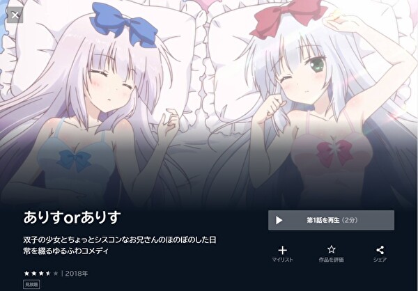 アニメ「ありすorありす」がNetflixで配信する予定があるのか念の為調べてみましたが、アニメ「ありすorありす」の配信予定はなく、未定になります。