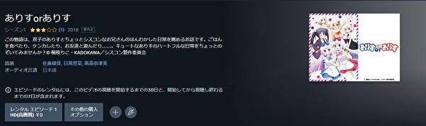 Amazonプライムはアニメ「ありすorありす」は無料で視聴できませんが、関連動画やシリーズ作品には見放題で配信されているものもあります。
