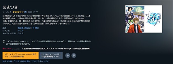 Amazonプライムはアニメ「あまつき」は無料で視聴できませんが、関連動画やシリーズ作品には見放題で配信されているものもあります。