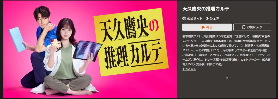 ドラマ|天久鷹央の推理カルテの動画をフルで無料視聴できる配信サイト