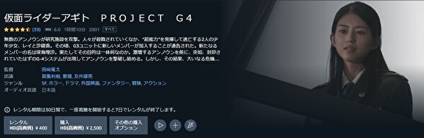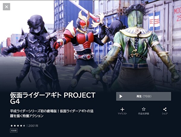 また、映画「仮面ライダーアギト PROJECT G4」の関連作品の映画も無料トライアル中にフル視聴が可能です。