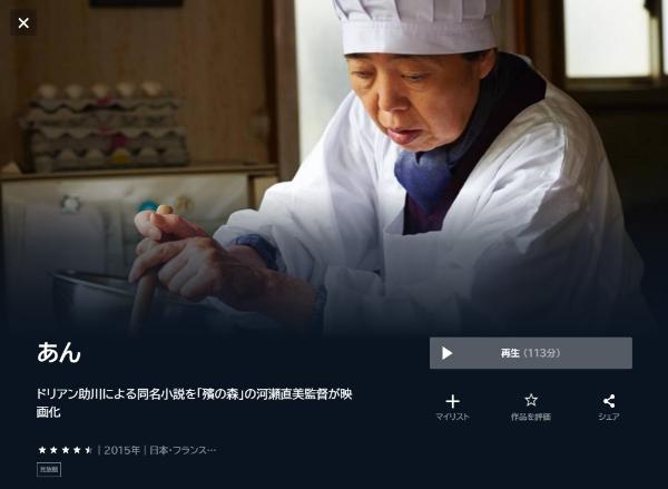 31日間のお試し期間があり映画「あん」を配信してるのでフルで視聴ができます。
