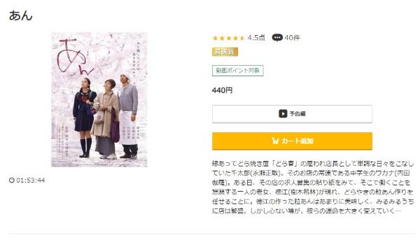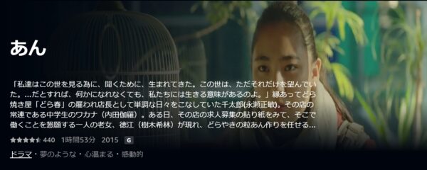 初回お試し期間が30日間あり、映画「あん」の動画も440円円でフル視聴することができます。