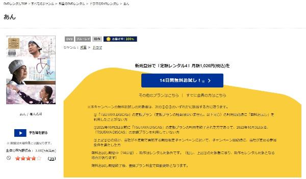 レンタルで「あん」の動画を視聴する場合は、レンタル期間もあるのでその点だけ注意してくださいね。