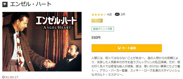 映画「エンゼル・ハート」は550円でレンタル配信してるので、フルで視聴できます。