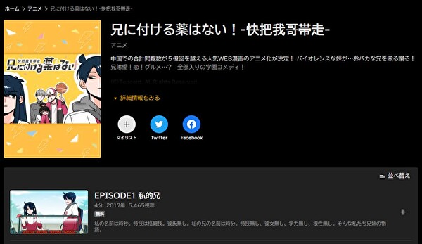 結論、「兄に付ける薬はない!-快把我哥帯走-(1期)」のアニメは配信はしていません。