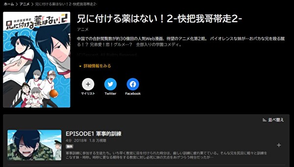 結論、「兄に付ける薬はない!2-快把我哥帯走2-(2期)」のアニメは配信はしていません。