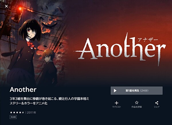 • 「Another(アナザー)」の関連動画も無料で視聴できる。