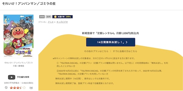 TSUTAYA DISCASで映画「それいけ!アンパンマン ゴミラの星」をDVDレンタルでフルで無料視聴