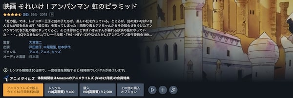 Amazonプライムビデオでも映画「それいけ!アンパンマン 虹のピラミッド」はフルで視聴することができます。