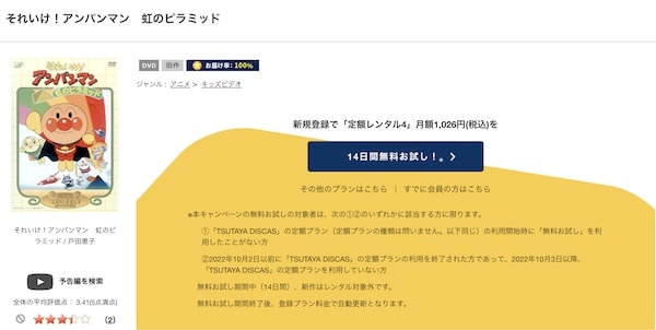 TSUTAYA DISCASで映画「それいけ!アンパンマン 虹のピラミッド」をDVDレンタルでフルで無料視聴