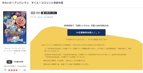 TSUTAYA DISCASで映画「それいけ!アンパンマン すくえ!ココリンと奇跡の星」をDVDレンタルでフルで無料視聴