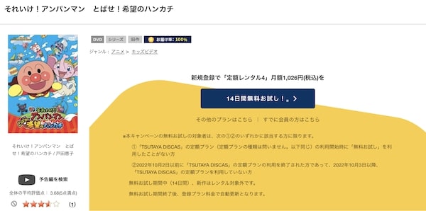 TSUTAYA DISCASで映画「それいけ!アンパンマン とばせ!希望のハンカチ」をDVDレンタルでフルで無料視聴