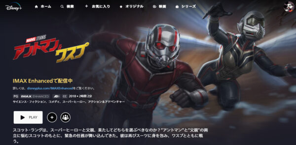 - 「アントマン&ワスプ」の他のディズニー作品も視聴可能。