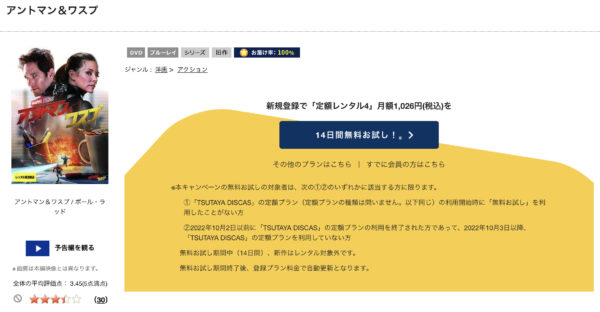 TSUTAYA DISCASで映画「アントマン&ワスプ」をDVDレンタルで無料視聴