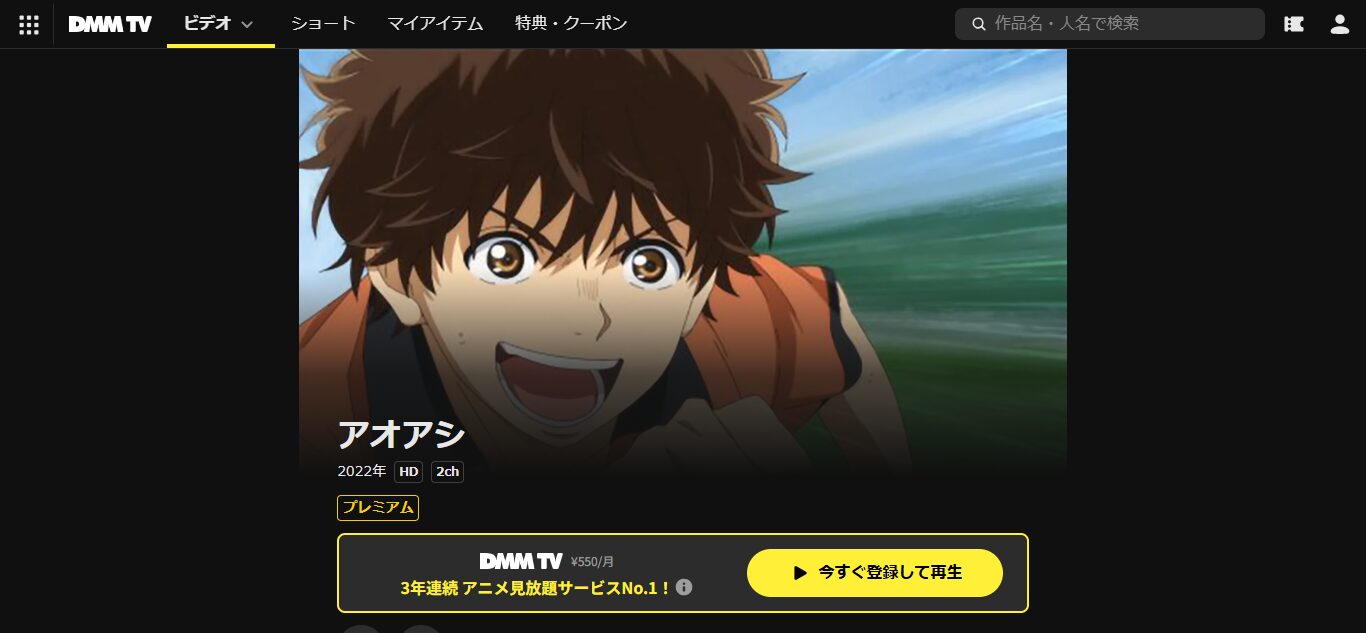 2026年3月現在、DMM TVではアニメ「アオアシ」の動画が見放題で配信中です。