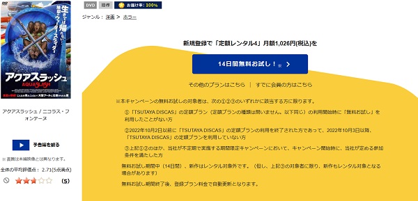 TSUTAYA DISCASで映画「アクアスラッシュ」をDVDレンタルで無料視聴